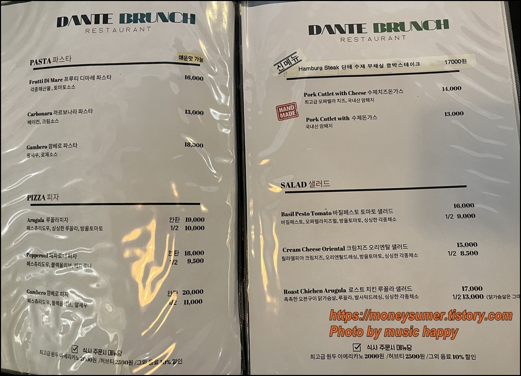 <논산 브런치카페 단테 메뉴>