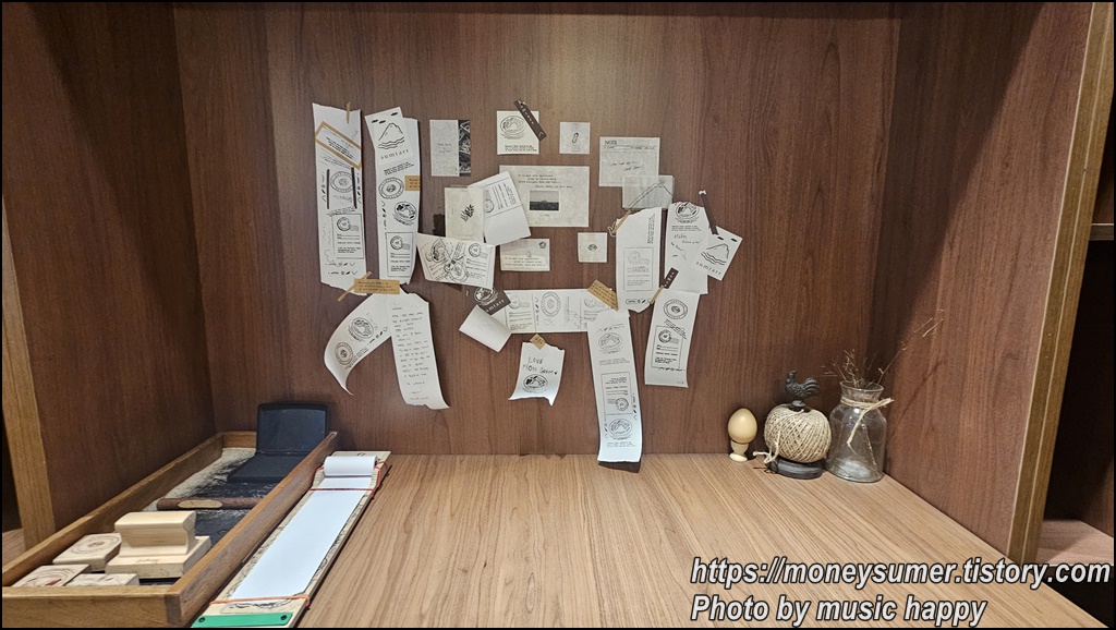 여러 가지 도장 찍어서 다녀간 기록(?)을 남기는 공간인 듯해요