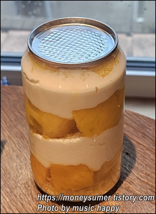 순 우유 애플망고 생크림 캔케이크(9,500원)는은 부드러운 우유 생크림과 신선한 애플망고의 맛을 즐길 수 있어요