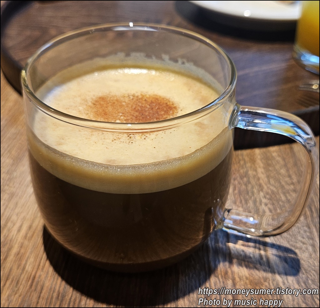 제주 토종 유정란으로 만든 커스터드 크림과 아메리카노가 들어간 이 커피는 부드럽고 적당히 달달하면서 고소했어요.