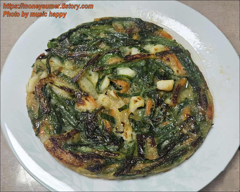 부추, 오징어, 당근, 양파 등이 들어간 오징어부추전은