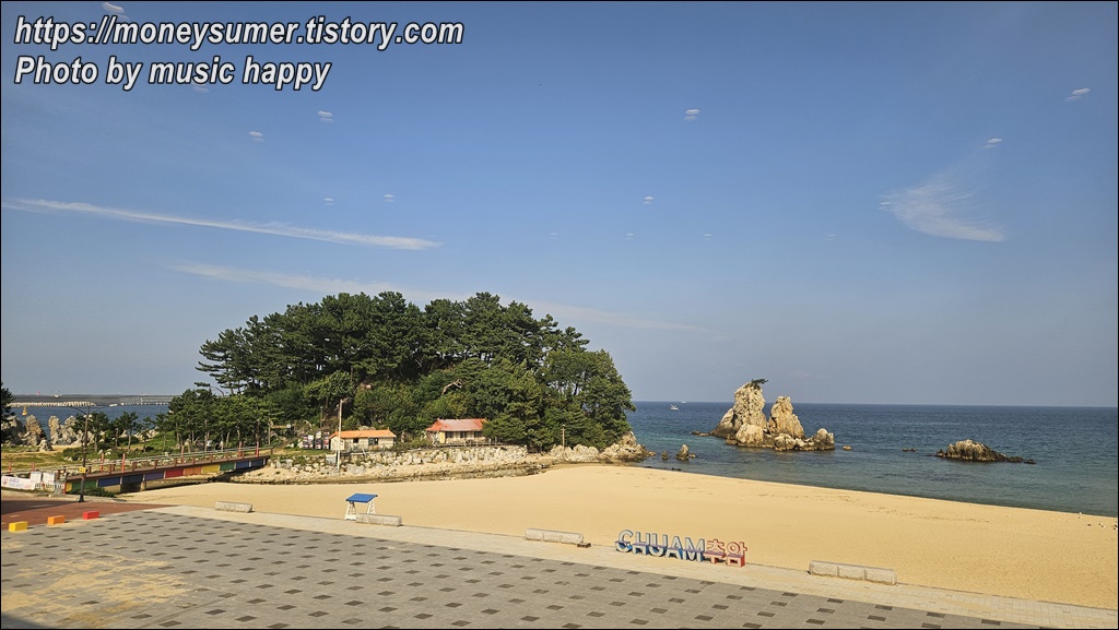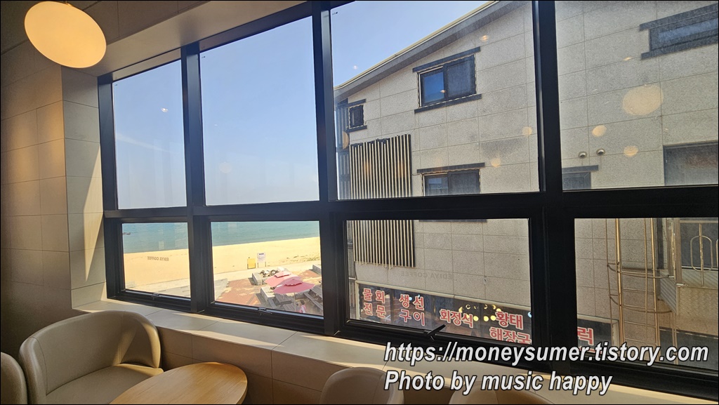 창문밖으로 보이는 추암해변이 산책하면서 걸었던 바다의 모습과는 또 다른 아름다움을 선사하더라고요~