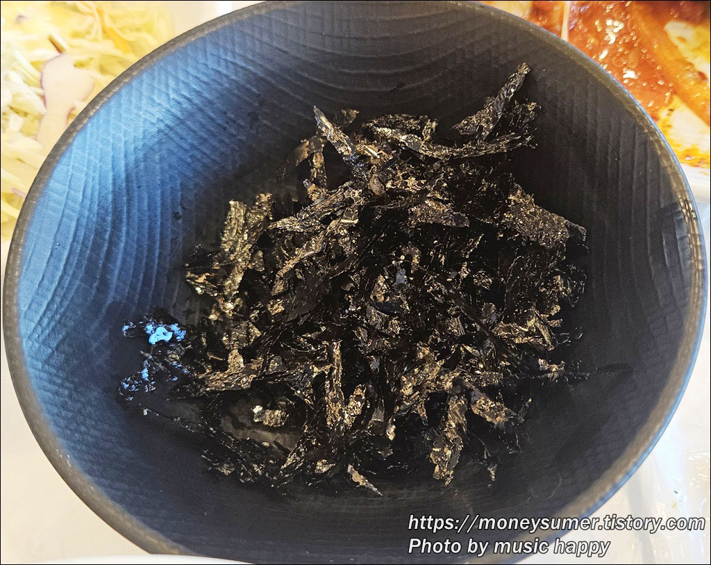 밥에 김과 낙지볶음을 넣고 비벼 먹어도 맛있어요. 콩나물까지 넣어서 먹으니 더 맛있더라고요