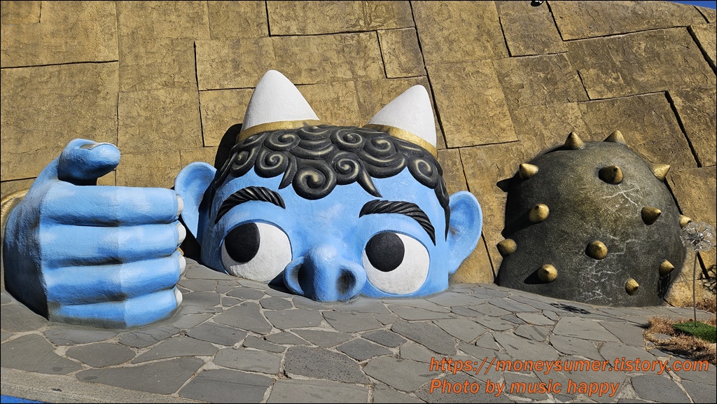 ※ 사람 형태의 바위는 자연적으로 생긴 천연암석인데 대략적인 기본 형상에 인공적으로 코와 입을 뚜렷하게 만든 것이라고 하네요.