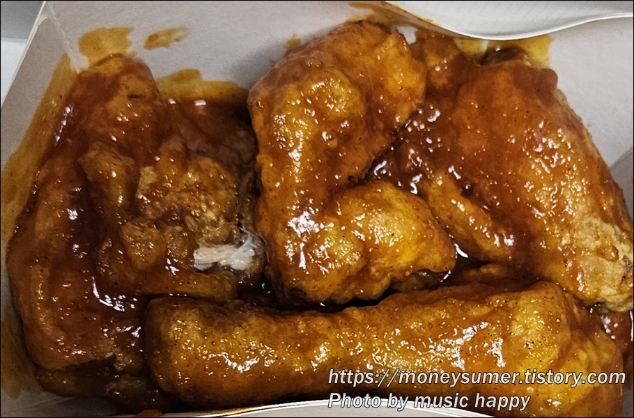 근데 저한테는 좀 더 매운치킨이 입맛에 맞았을 것 같아요.