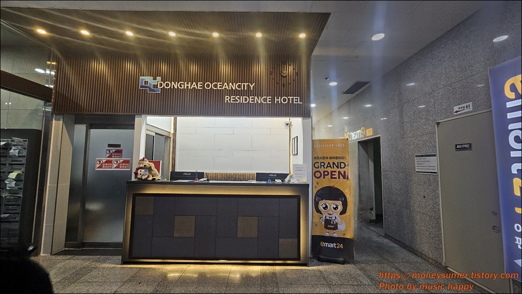 저렴한 호텔을 찾은 곳이 동해 오션시티 레지던스 호텔이에요.