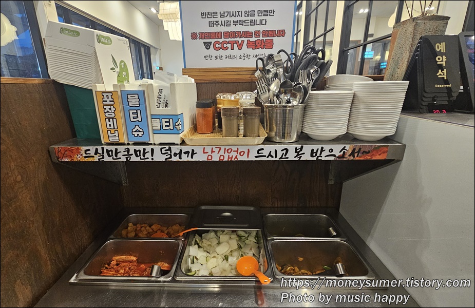 추가반찬과 물티슈는 셀프코너를 이용하시면 되고요