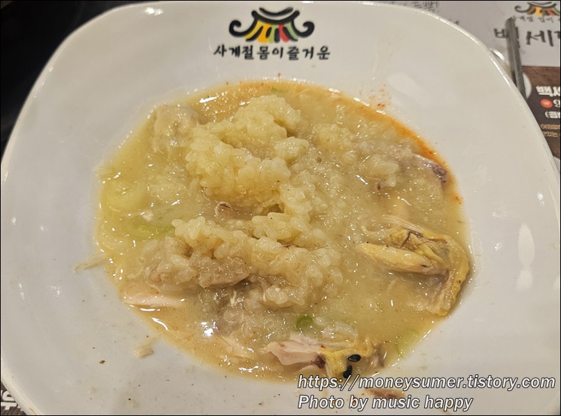 부드러운 닭고기살이 맛있어요. 물론 죽도 너무 맛있더라고요.