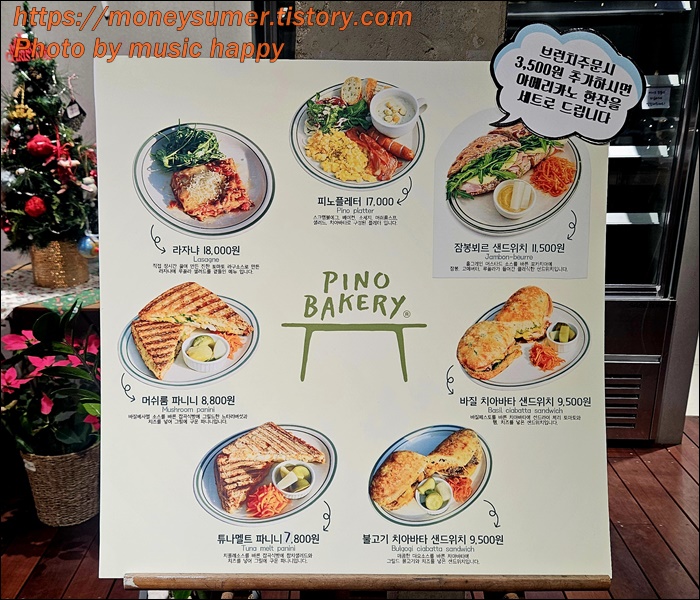 - 잠봉뵈르 샌드위치 11,500원, 피노플레터 17,000원, 라자냐 18,000원