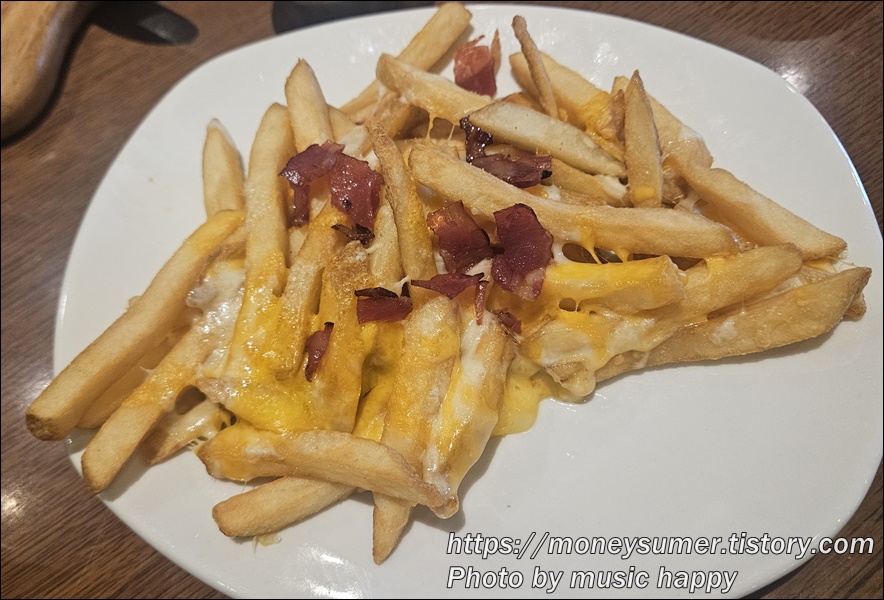 베이컨과 치즈가 들어간 후라이즈 또한 맛있어요.