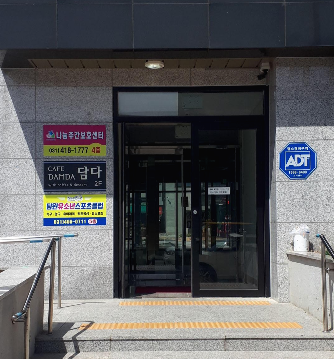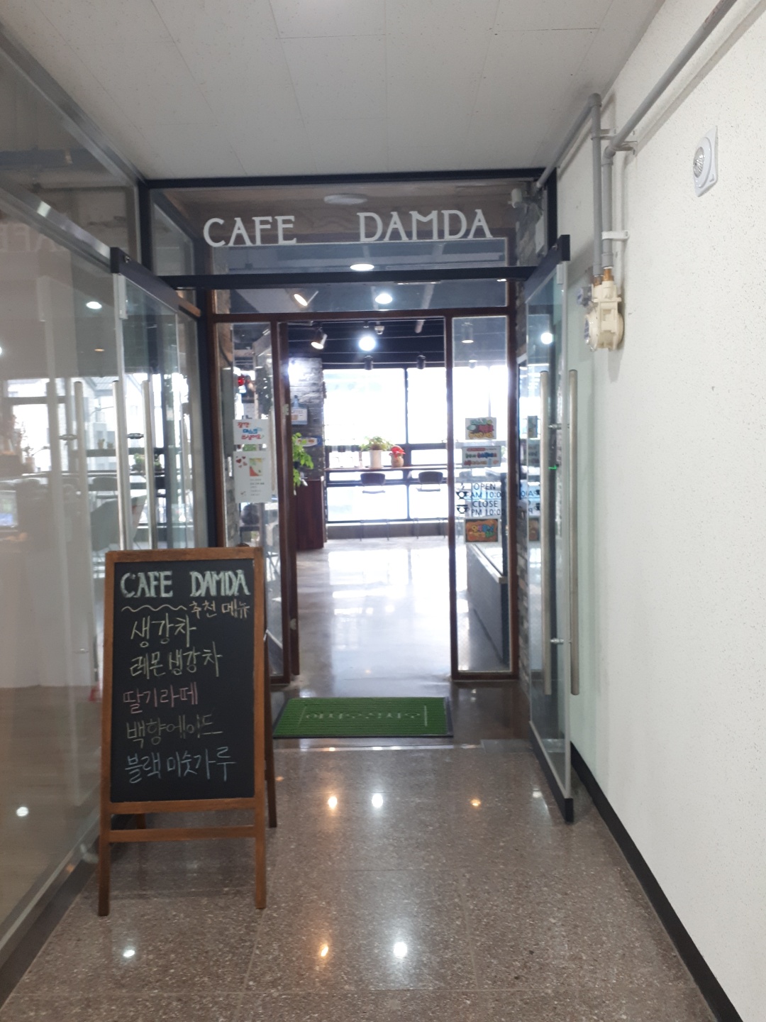 2층으로 올라가면 이렇게 카페 담다가 보여요~ 건물이 오래되지 않아서 복도나 계단도 깔끔하답니다.