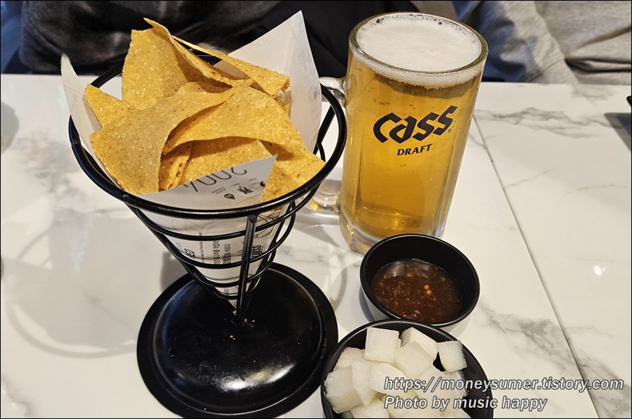 매장에서 생맥주 주문하면 나쵸를 주는 데 이거 너무 바삭하니 맛있어요.