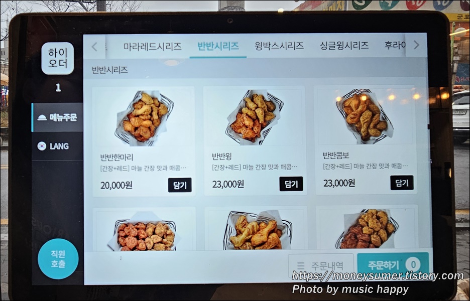 - 반반 한 마리 20,000원, 반반윙/ 반반콤보 23,000원