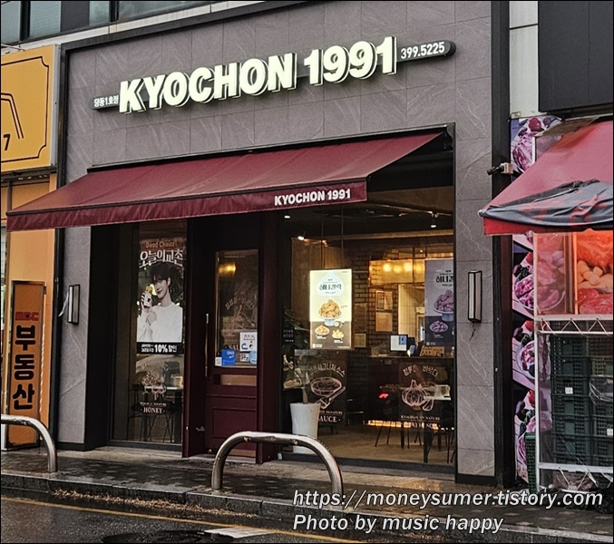 비가 오는 평일 저녁에 갑자기 교촌치킨 떡볶이가 먹고 싶다는 딸을 위해 교촌치킨을 갔어요.