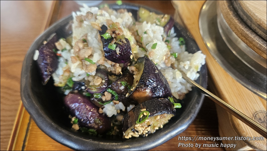 가지솥밥에는 큰 가지가 하나 다 들어간 것 같아요.