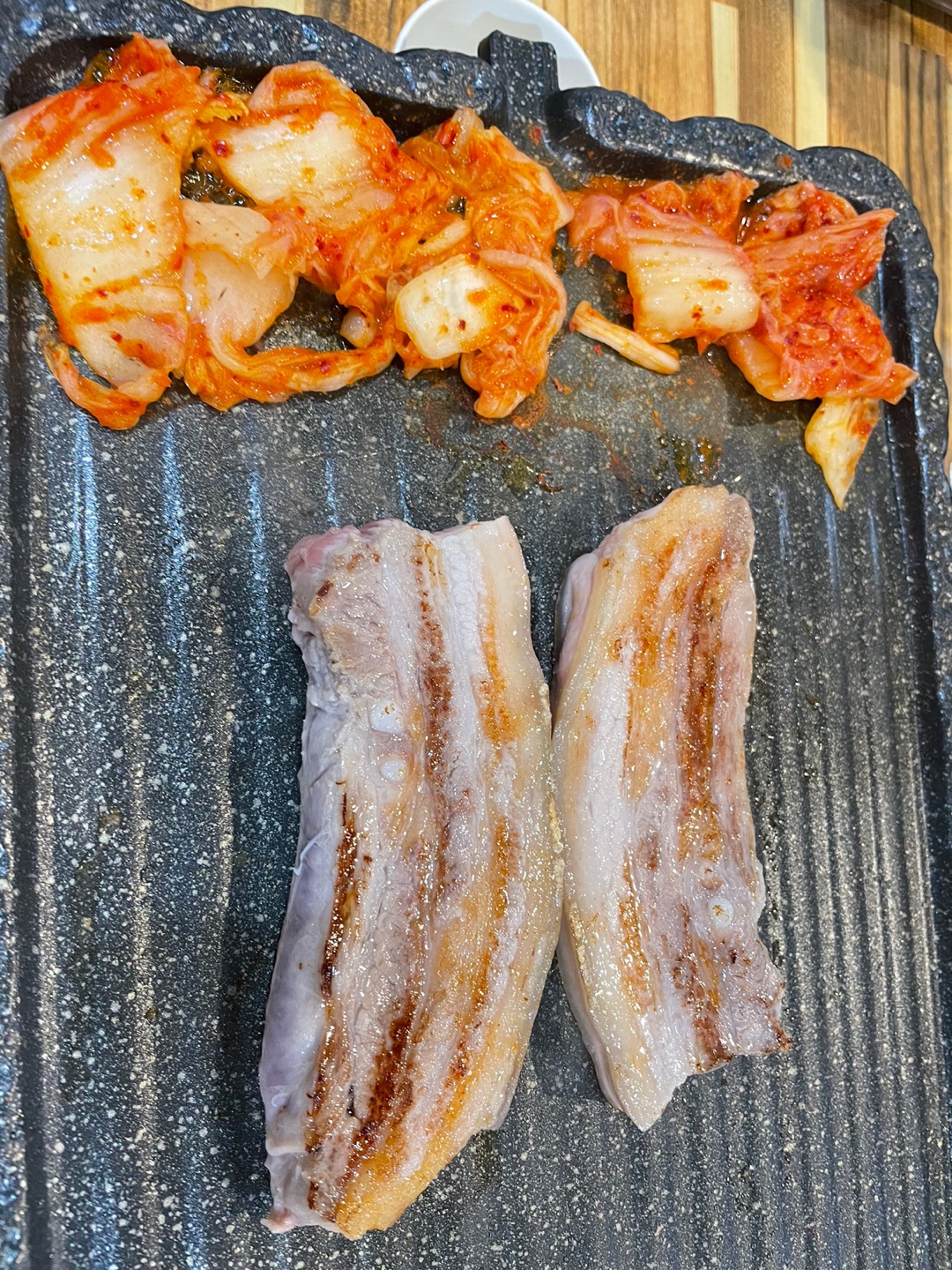 수제 돼지갈비도 먹어보고 싶었지만 삼겹살이 먹고 싶어 간 날이라 오겹살로 2인분 주문했답니다.