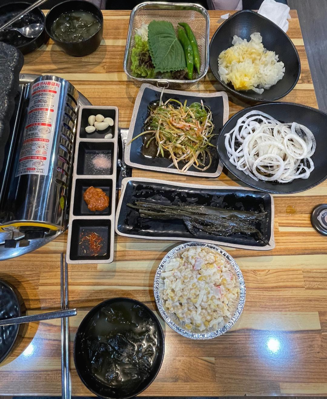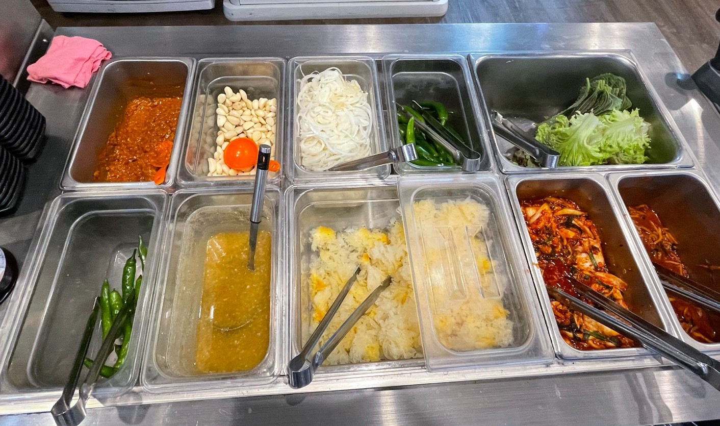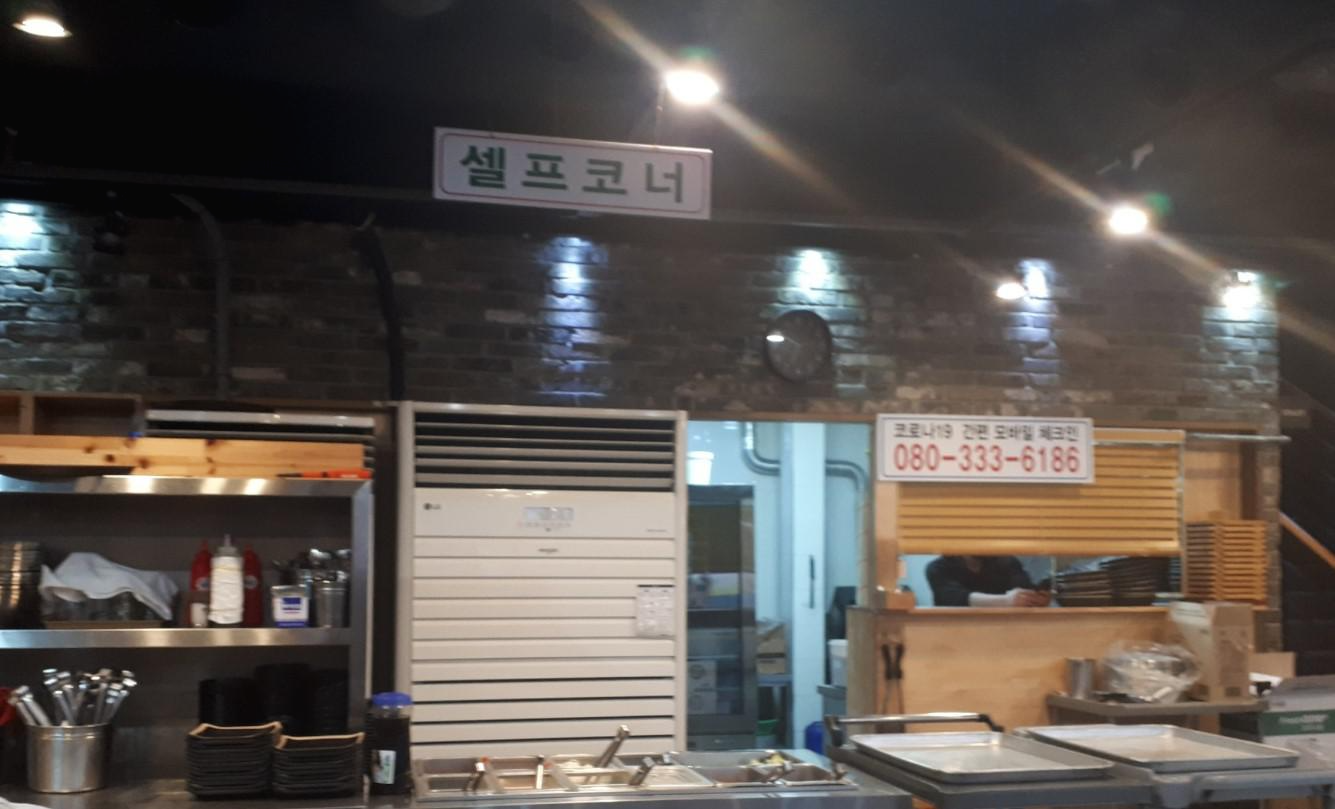 처음 반찬은 직원분께서 가져다 주시고 그 다음부터 더 드시고 싶은 반찬이 있다면 이렇게 셀프코너를 이용하시면 되네요~ 셀프코너 갈 때도 마스크 잊지 마세요. 간혹 마스크 없이 가시는 분들이 있더라고요(┬┬﹏┬┬)