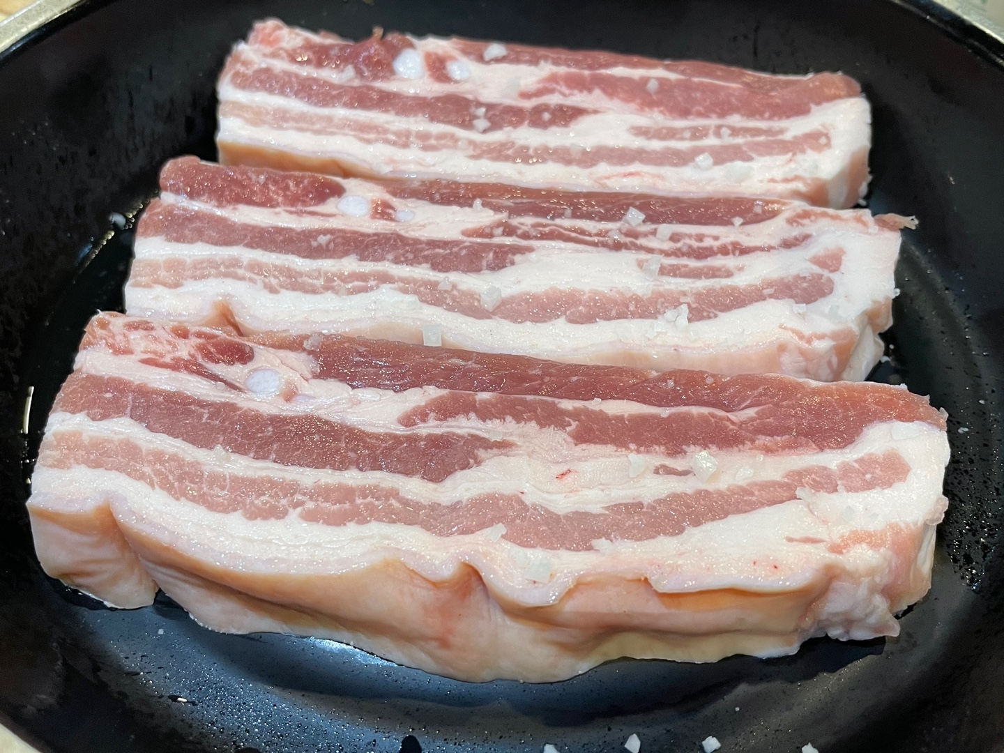드디어 두툼한 오겹살이 나왔어요~ 두툼한 고기를 좋아하는 신랑은 마음에 들어하더라고요~