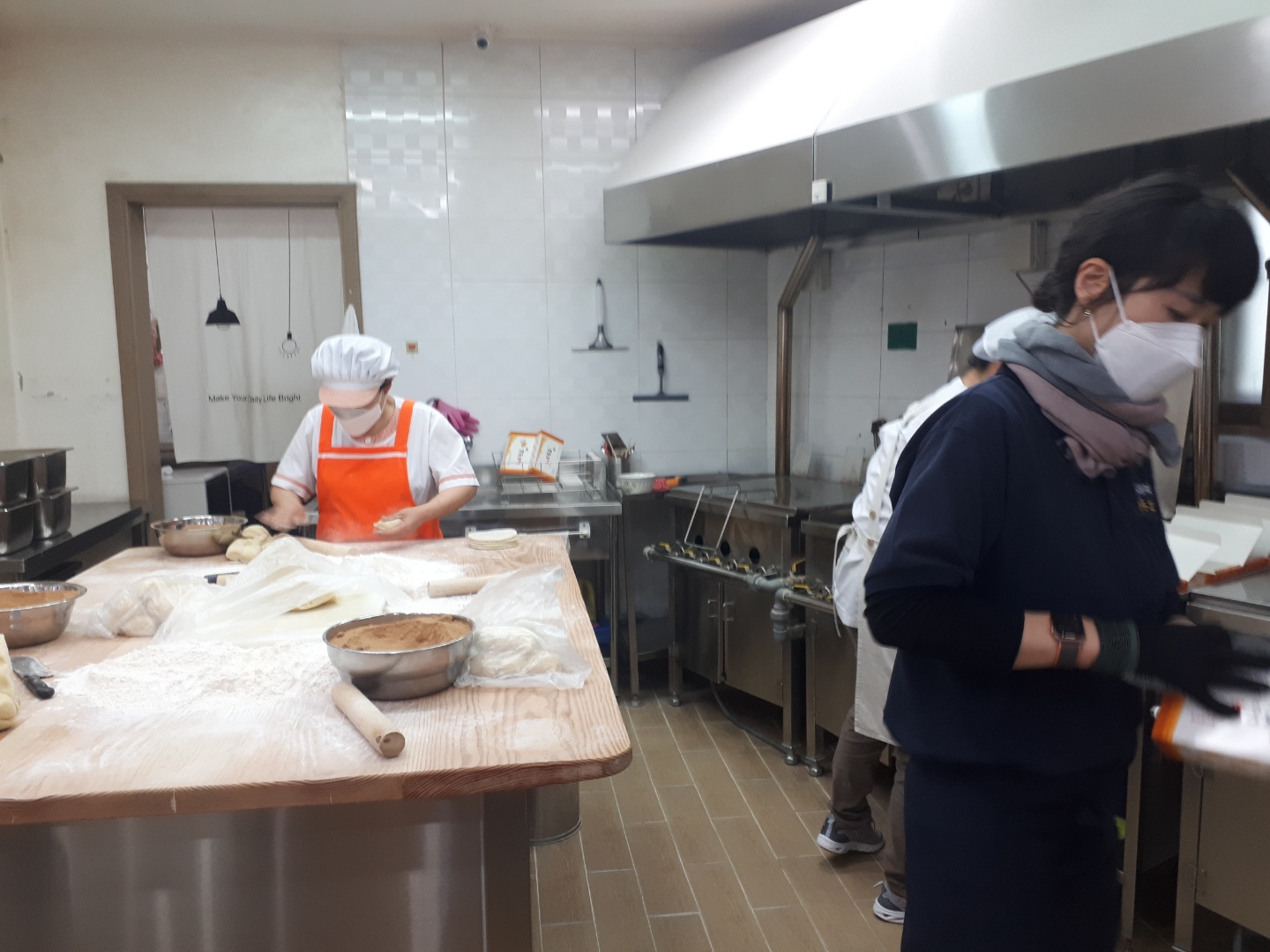 시중에서 파는 중국 호떡 같더라고요~ 기름에 튀기지 않아서 그런지 비주얼은 호떡보다는 그냥 담백한 빵 느낌이었어요.