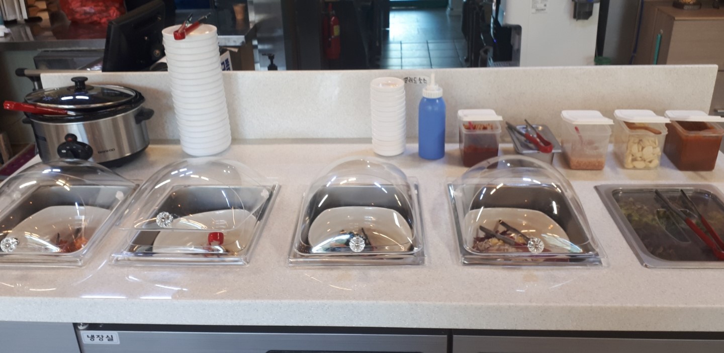 셀프 반찬 코너가 참 깔끔하죠! 이렇게 뚜껑이 있어서 정말 청결하게 보여요~