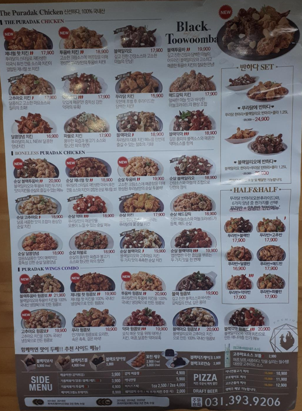 치킨이 생각날 때 푸라닭치킨을 시켜먹는 걸 추천 드려요.
