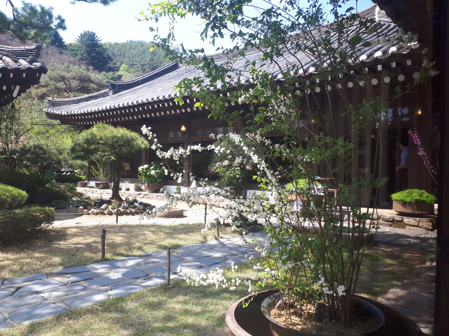 마치 한옥펜션같은 분위기예요. 기와집과 소나무의 조화로움이 묻어나는 멋스러운 풍경이네요~