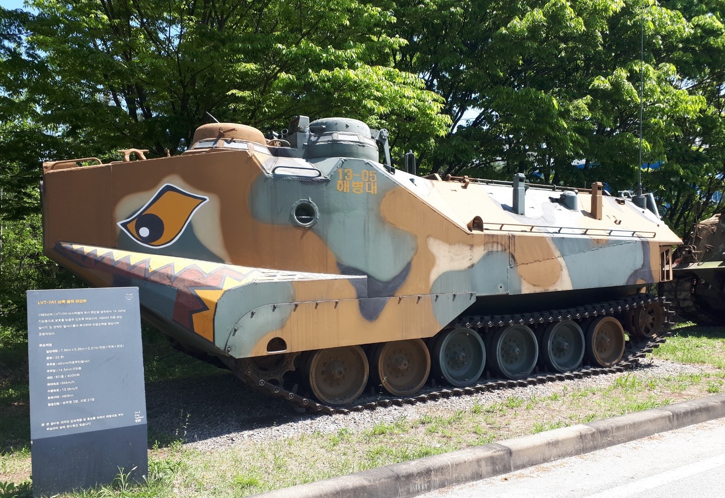 LVT-7A1 상륙 돌격 장갑차-1985년에 LVT-7에 이스라엘제 추가 장갑을 장착하여 14.5MM 기관총으로 보호를 받을 수 있도록 하였으며, 40MM 자동 유탄 발사기 및 연막탄 발사기를 추가하여 무장능력을 향상해 운용되었다고 쓰여 있네요.