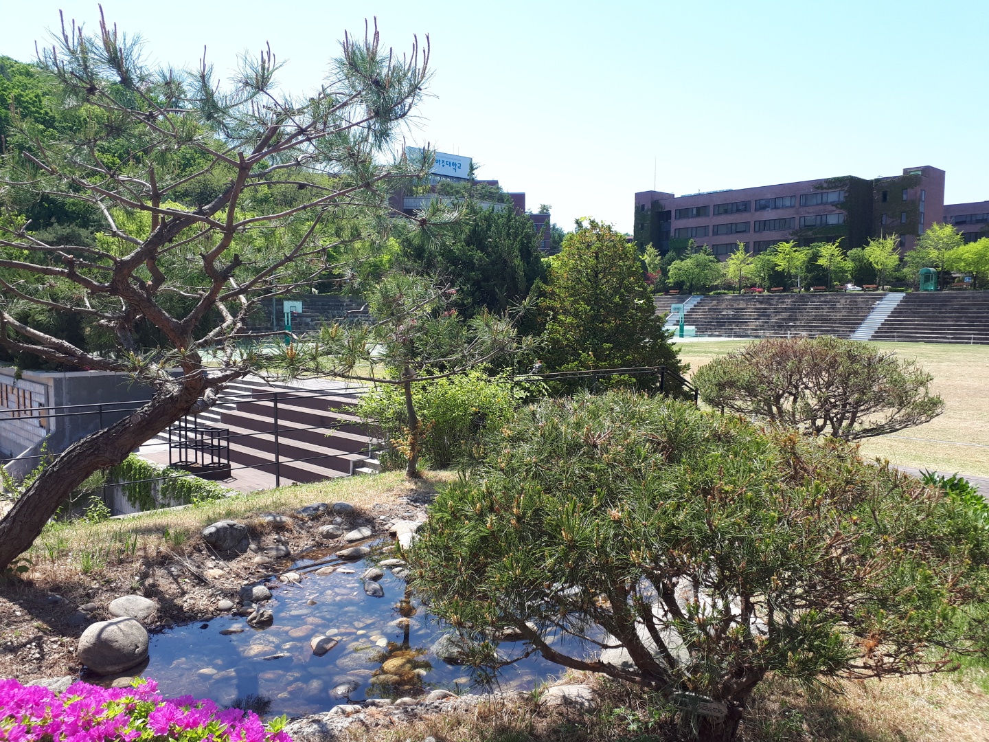 운동장 앞에 아주 조그마한 물웅덩이가 있어요. 미니정원 느낌이 나네요~