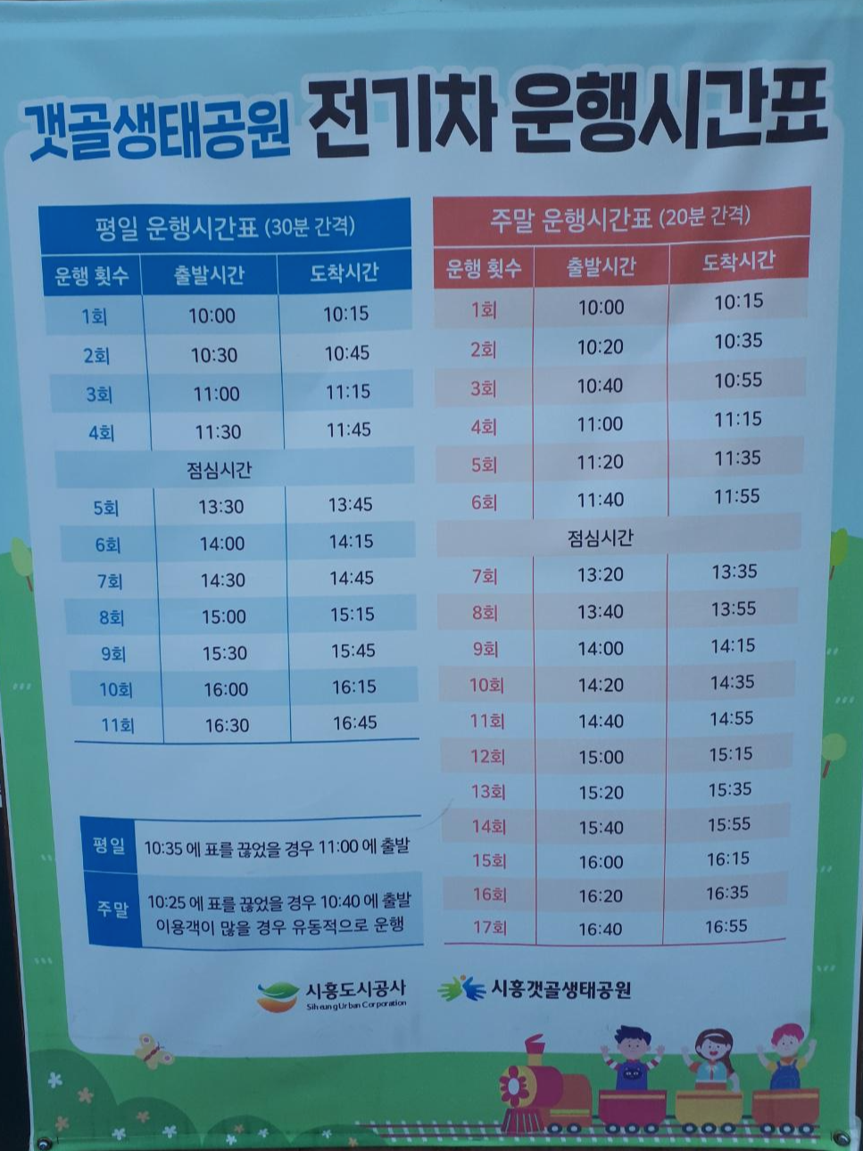 전기차는 평일과 주말시간표가 다르네요. 이용하실 분들은 참고하세요~