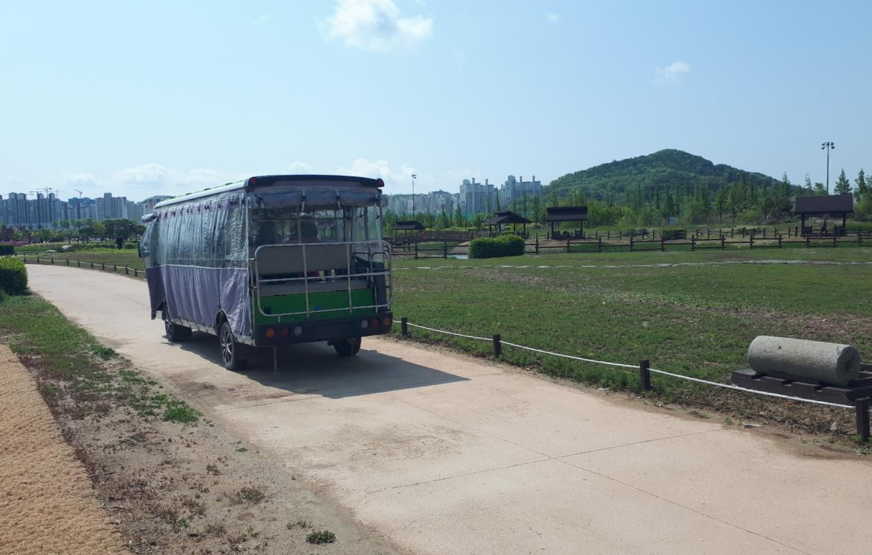 지나가는 버스를 보며 저희도 갯골생태공원을 빠져나왔어요~ 생각보다 볼거리가 많았던 공원이었어요.