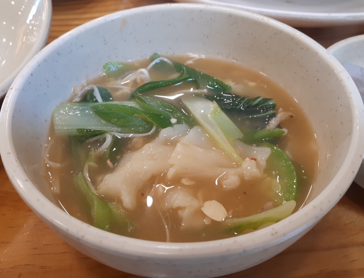 저는 주꾸미 정식을 먹고 싶었으나 매운 음식을 잘 못 먹는 신랑을 위해 털레기 수제비 2인분을 주문했어요. 보리밥을 먹을까 하다가 차를 타고 가야 하는데 차 안에서 생리현상(방귀)이 계속 발생하는 상황을 미연에 방지하는 차원에서 보리밥은 패스했어요~ㅎㅎ 저희가 주문한 털레기 수제비는 시래기와 건새우가 듬뿍 들어간 구수하고 시원한 국물 맛이 일품인 손수제비라고 하네요~
