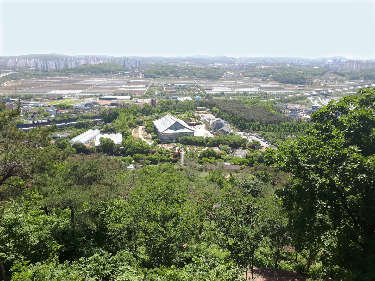 정상에서 올려다보니 우리 꽃 식물원이 아담해 보여요~^^