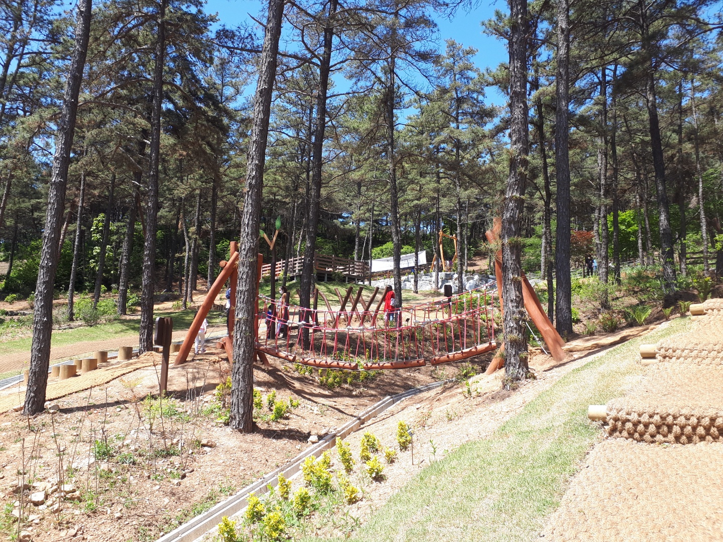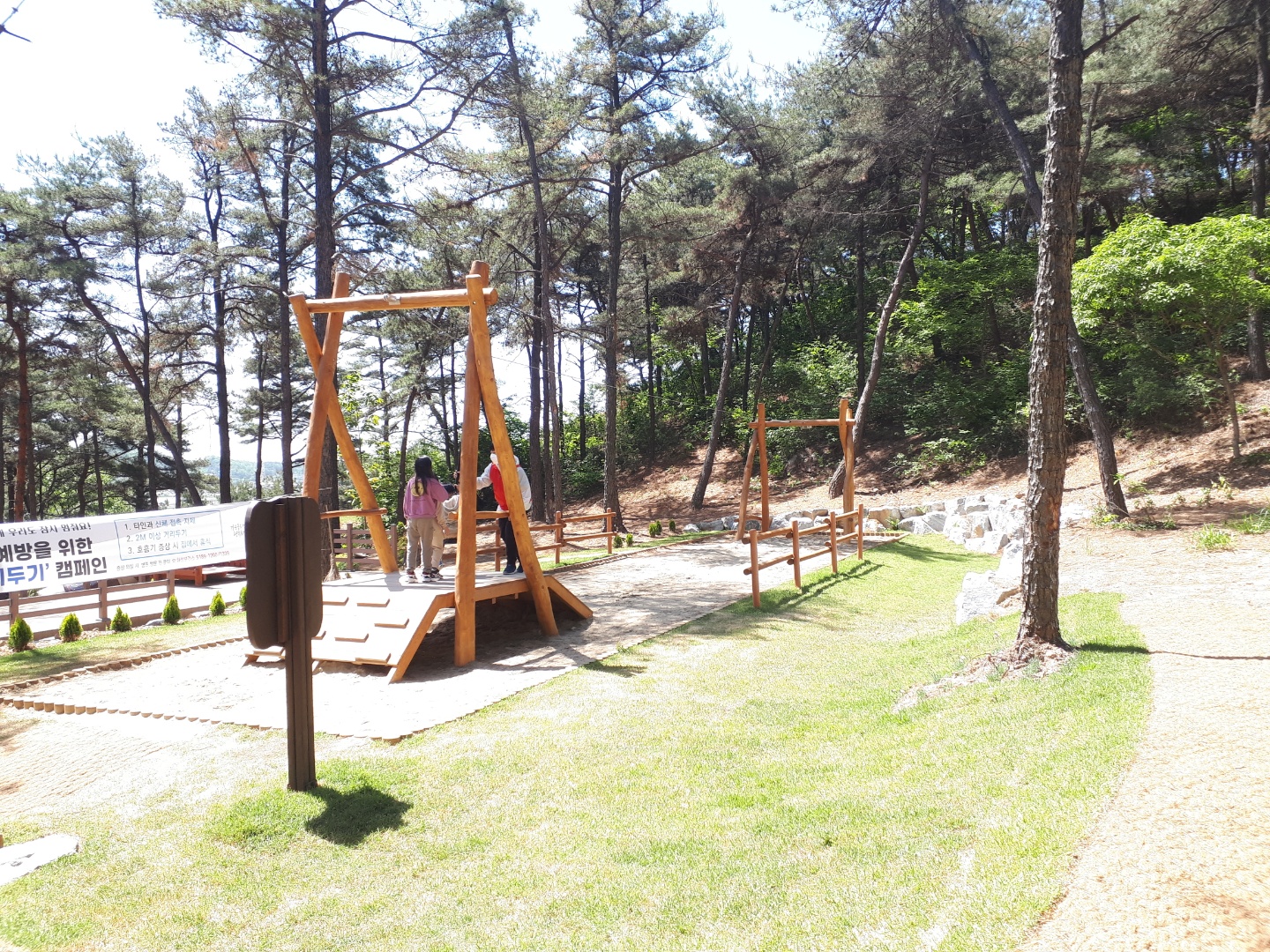 정상에서의 경치 구경을 마치고 내려가는 길에 놀이 숲을 발견하고 가보았어요~