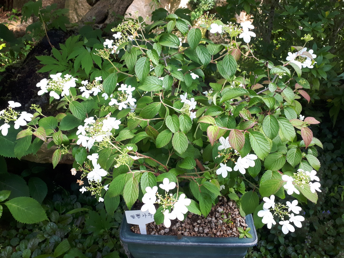 6월에 연한 자줏빛 꽃이 핀다는 낙상홍이에요. 온실에서 자라서 그런지 5월인데도 피어 있네요. 아주 아름답게!~