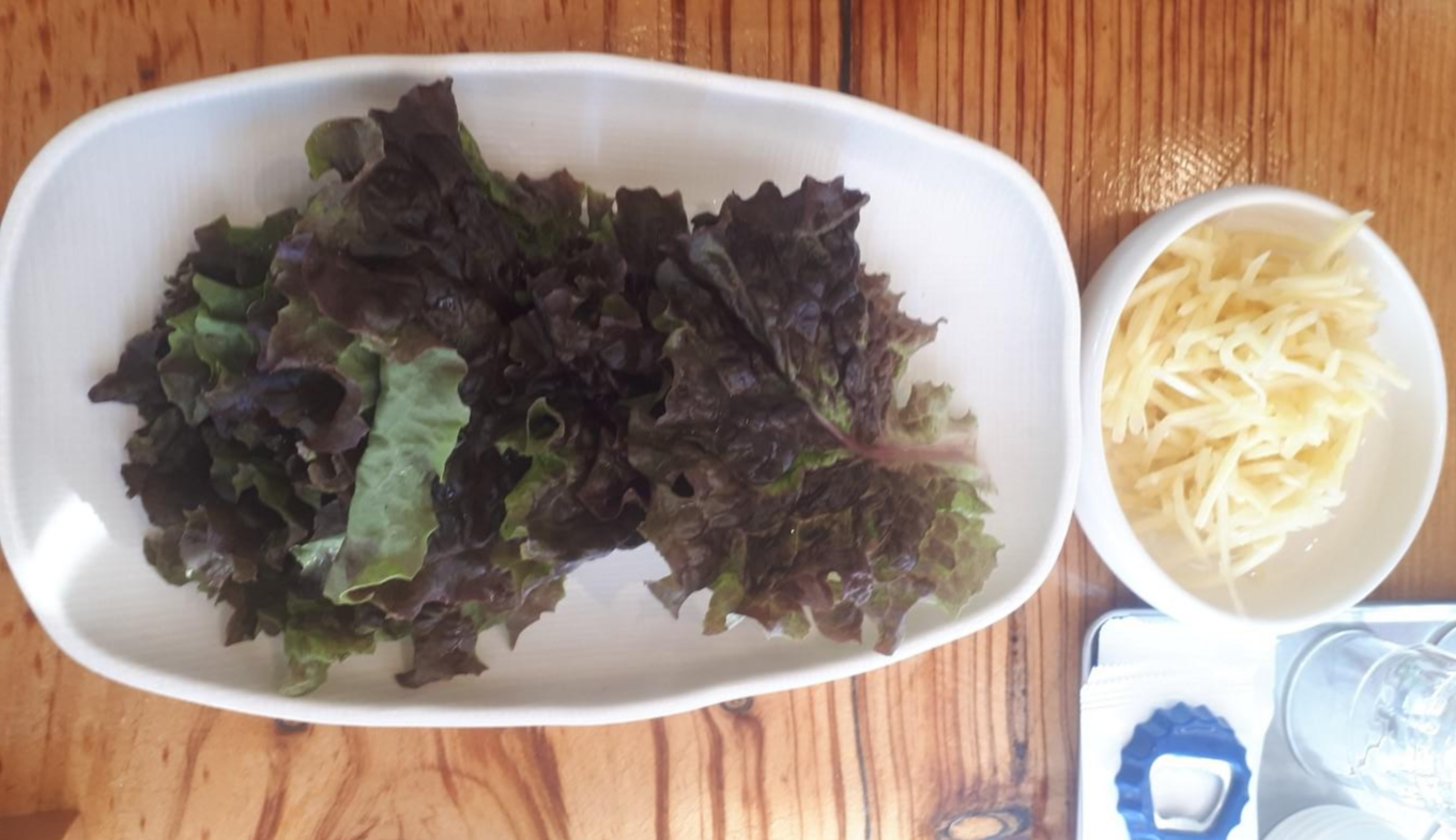 결제한 장어를 가지고 음식점 안으로 들어갔어요. 장어와 곁들여 먹을 상추와 생강이 있고요~