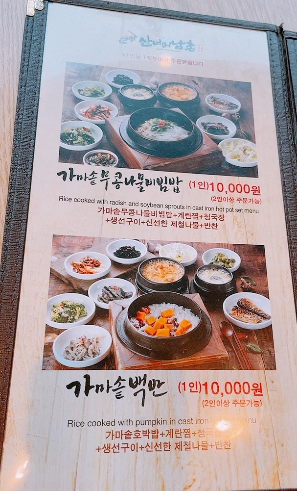 이날은 둘이서만 갔기 때문에 가마솥 백반 2인분을 주문했어요. 가격도 착한 편이네요~