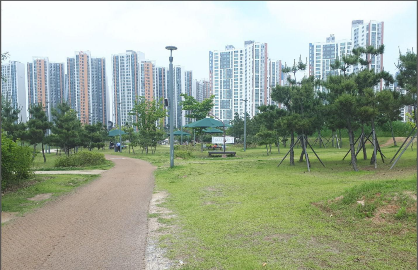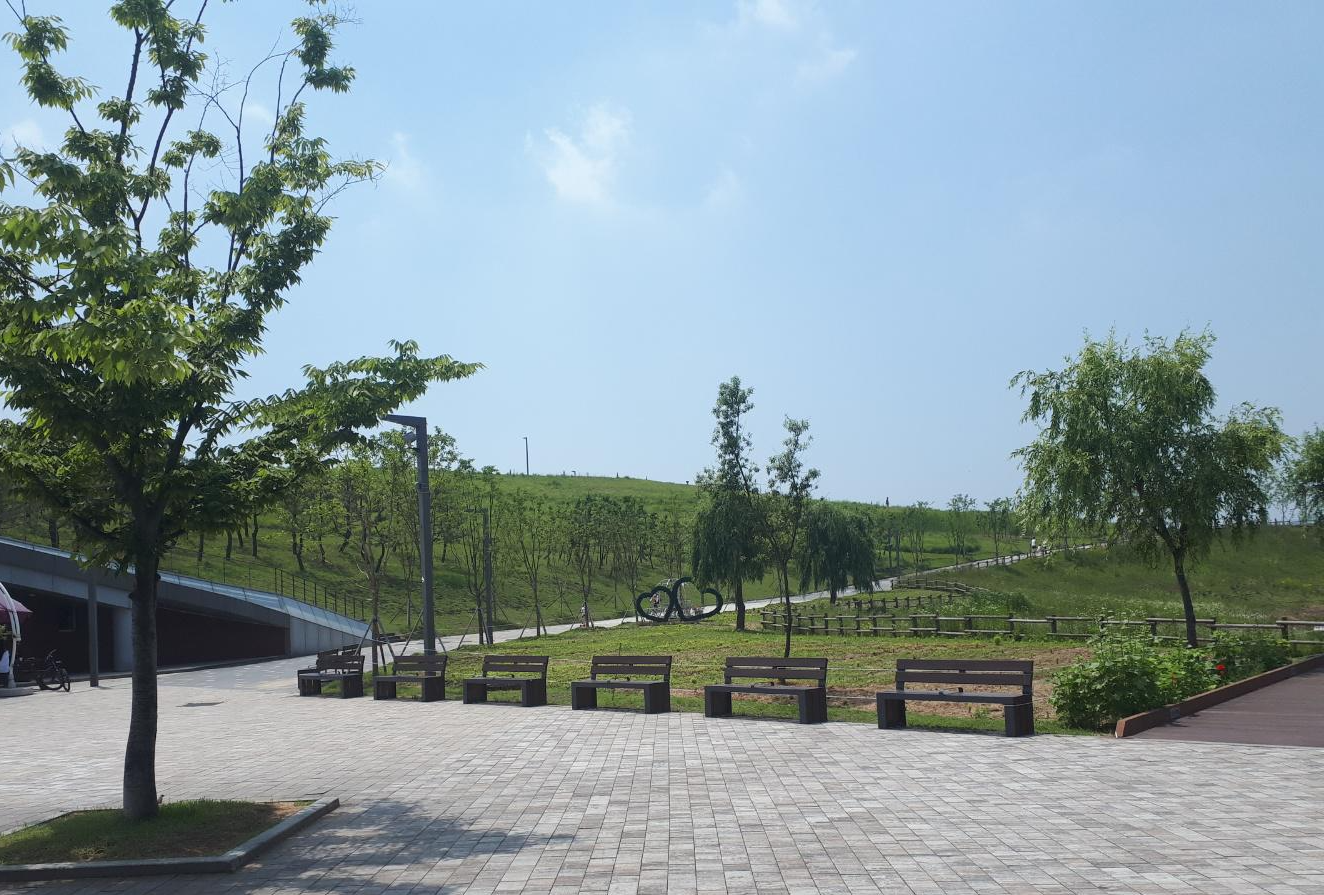 차양까지 되어 있는 벤치들도 많이 구비되어 있네요. 일요일이라 그런지 벤치에 앉아서 쉬고 있는 사람들이 많아서 사진을 멀리서 찍었어요~