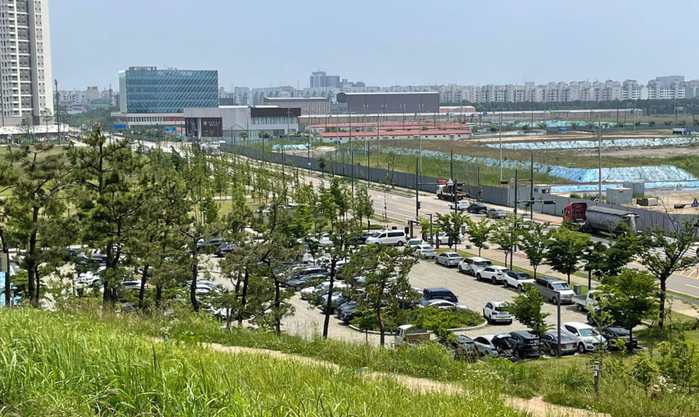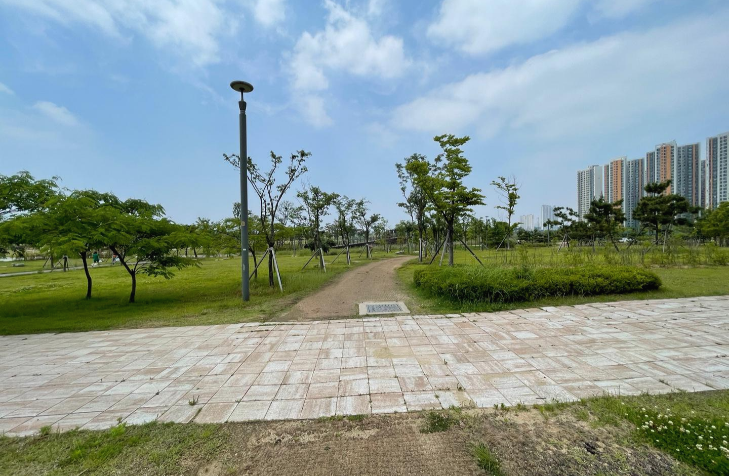 주차는 배곧신도시 상가 쪽 공영주차장에 했어요. 무료가 언제까지 되는지는 잘 모르겠지만 저희가 갔을 때는 무료주차였어요~ 주차를 한 후에 많은 음식점들과 카페를 쭉 지나서 건널목을 건너면 배곧 생명공원이 보입니다.