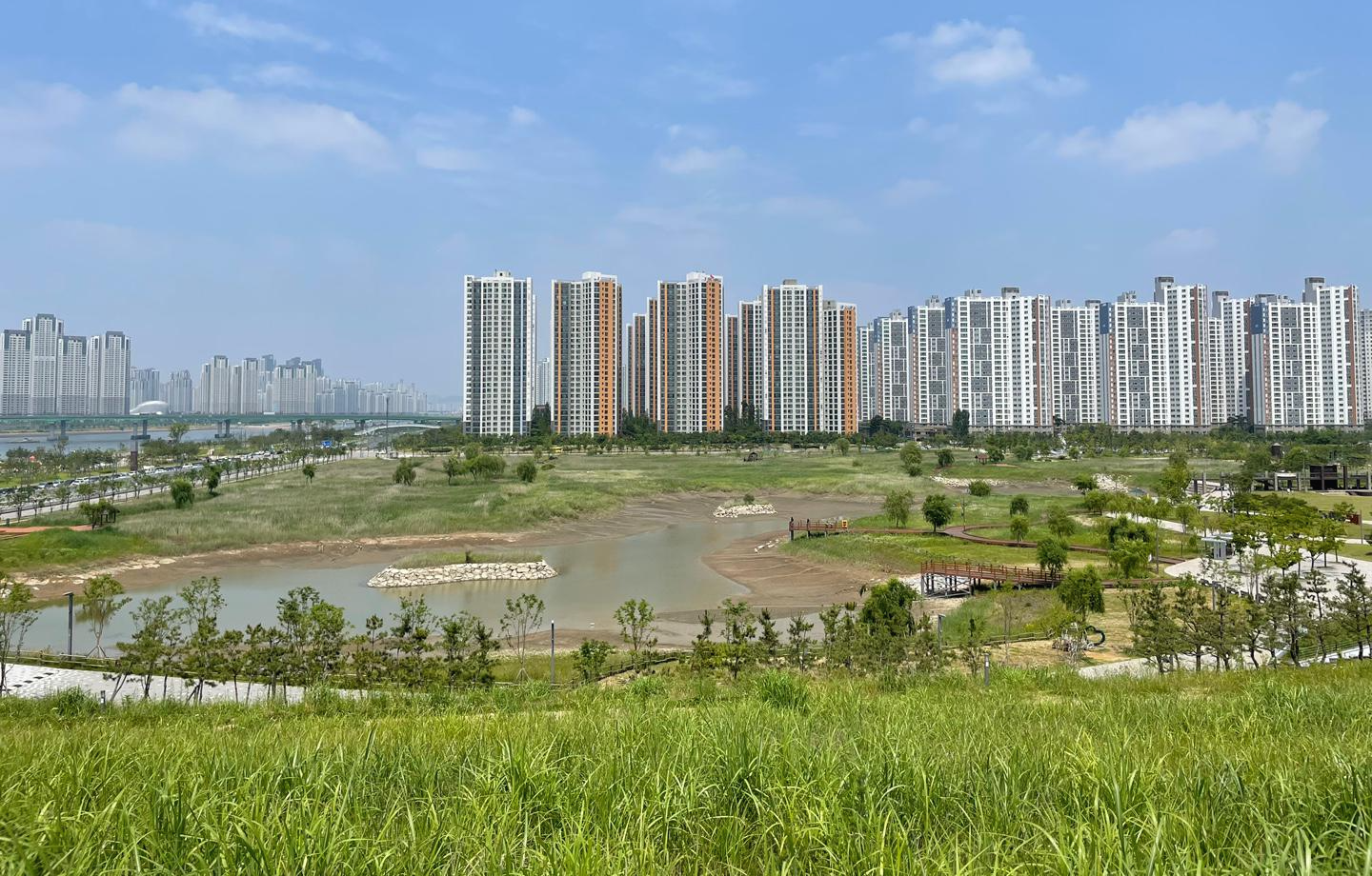 정상에서 바라본 모습이에요~ 독특하게 지어진 아파트와 공원이 잘 어울리는 것 같아요~