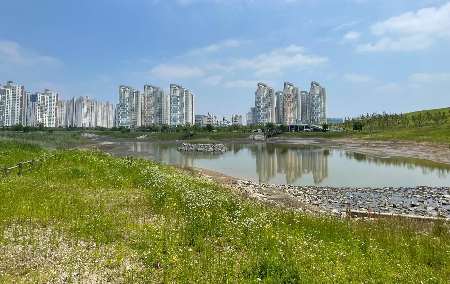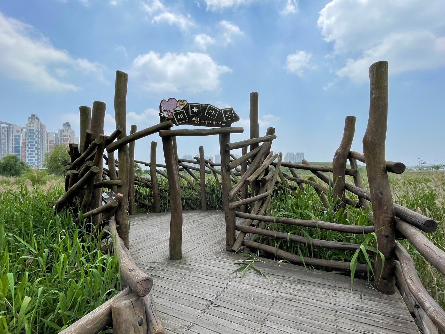 해수와 담수가 어울리는 생태연못인 여울못이에요. 이 연못은 약 30,000㎡의 면적으로 서해의 조수간만 차에 의해 하루 두 번 해수가 기수 연못 내로 자연스럽게 유입되어 스스로 작동하는 습지라고 합니다.