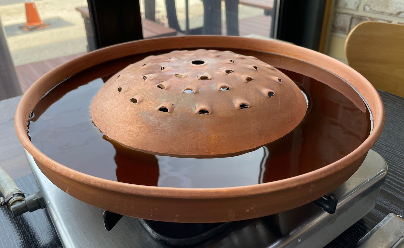 맛있게 익어가는 중이에요~ 육수에 끓여 먹을 수도 있고 가운데 볼록한 판에 구워 먹을 수도 있네요~