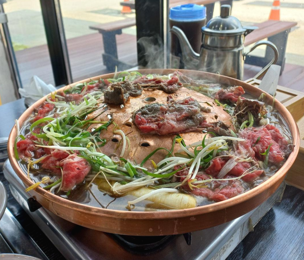 직원분께서 먼저 버너에 불을 켜고 고기판을 올린 다음 육수를 붓고