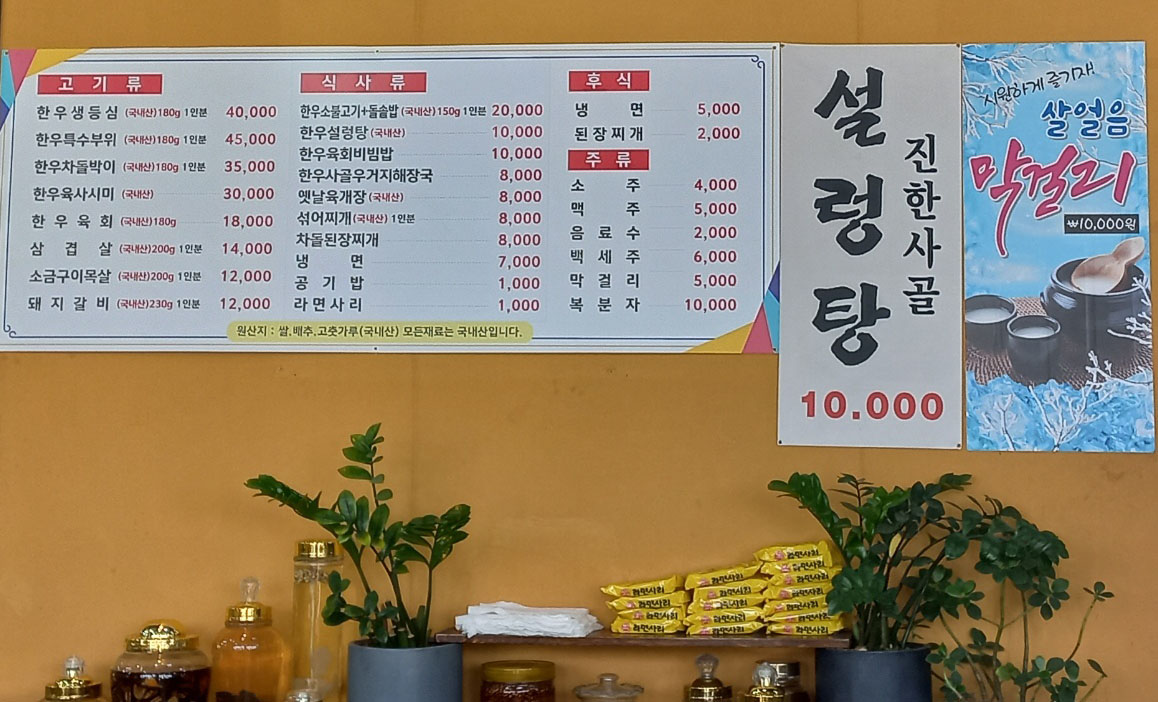 누룽지만 좀 아쉬웠을 뿐 소불고기와 반찬들은 너무 맛있게 잘 먹었어요~ 아들, 딸을 위해 한우설렁탕과 한우 사골우거지 해장국을 포장해 갈려고 했더니 날이 더워서 음식이 상할 수 있는 관계로 포장은 안된다고 하시더라고요~