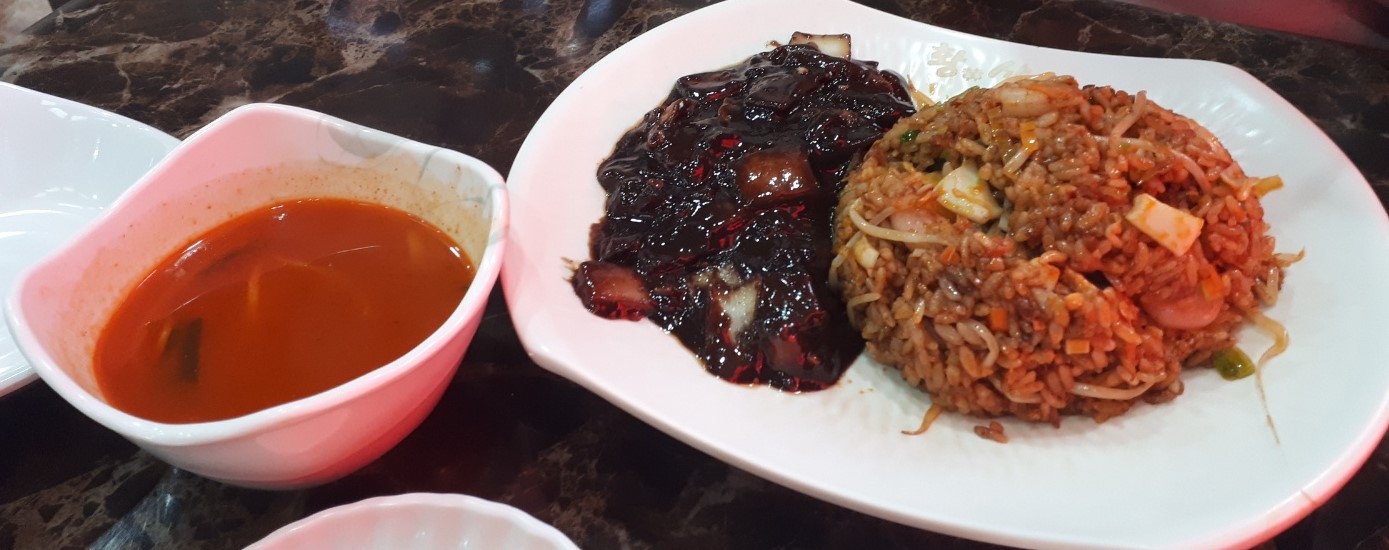 다른 곳과 다르게 볶음밥 색깔이 다르네요. 보통 소금으로 간을 할텐데, 이곳은 간장소스를 쓴 것 같기도 하고...